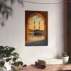 This design is a beautiful depiction of the Kaaba, viewed through the grand archway of Masjid al-Haram. Warm tones and intricate architectural details capture the serene atmosphere of Makkah, making it a meaningful piece for your home, office, or prayer space.