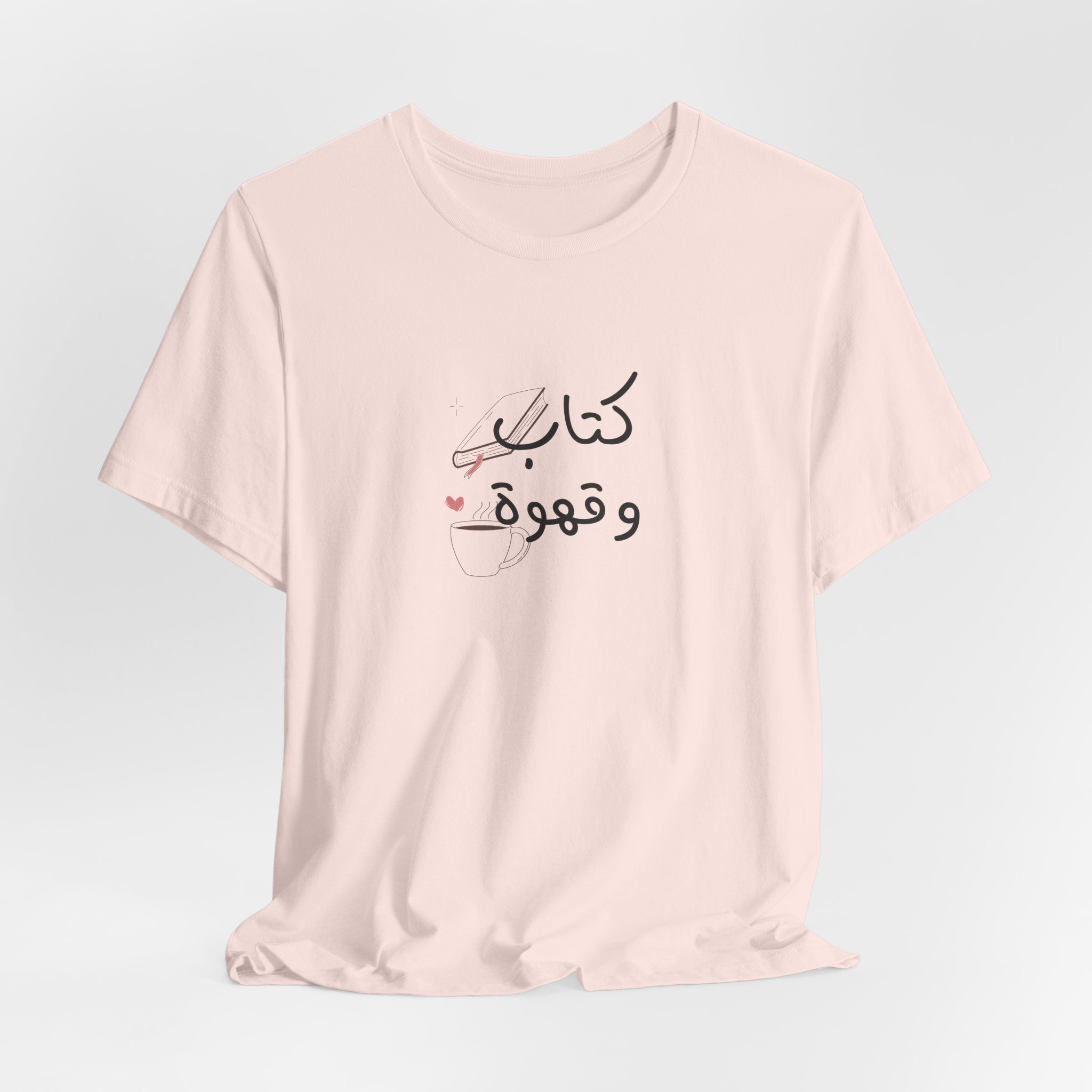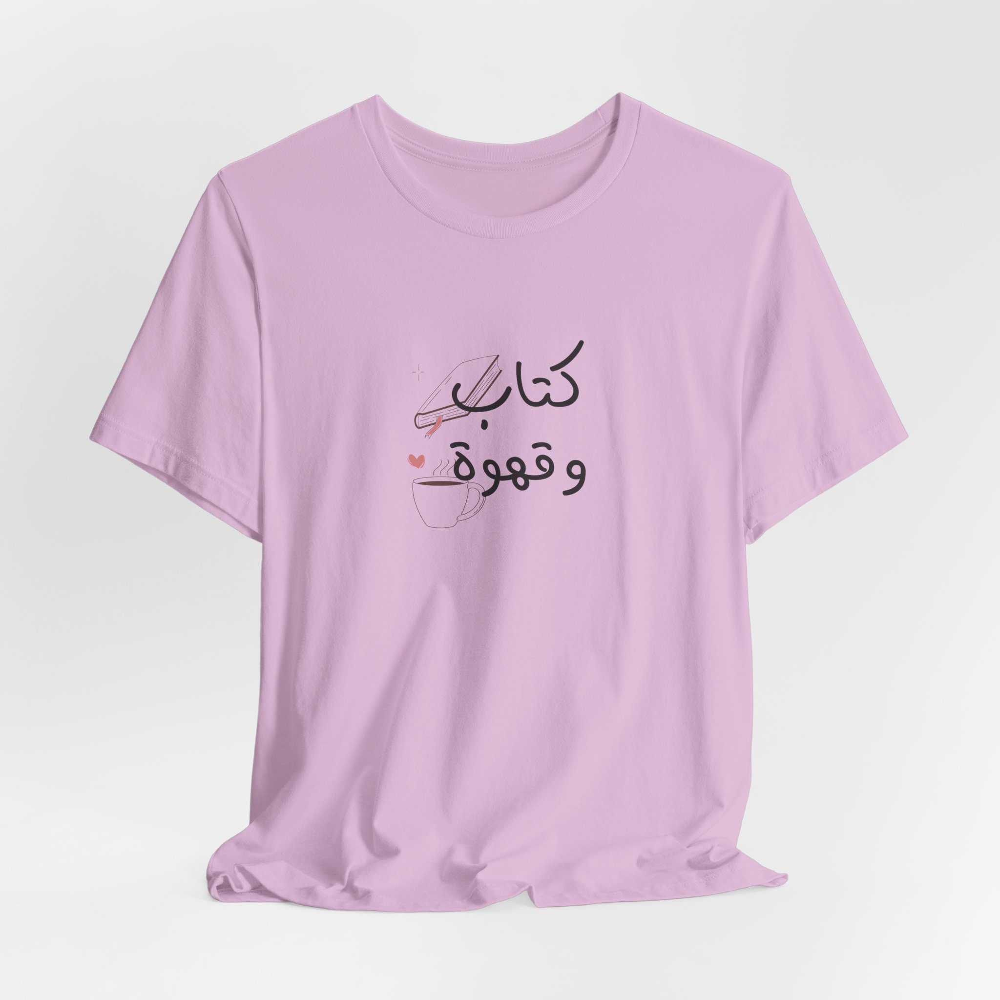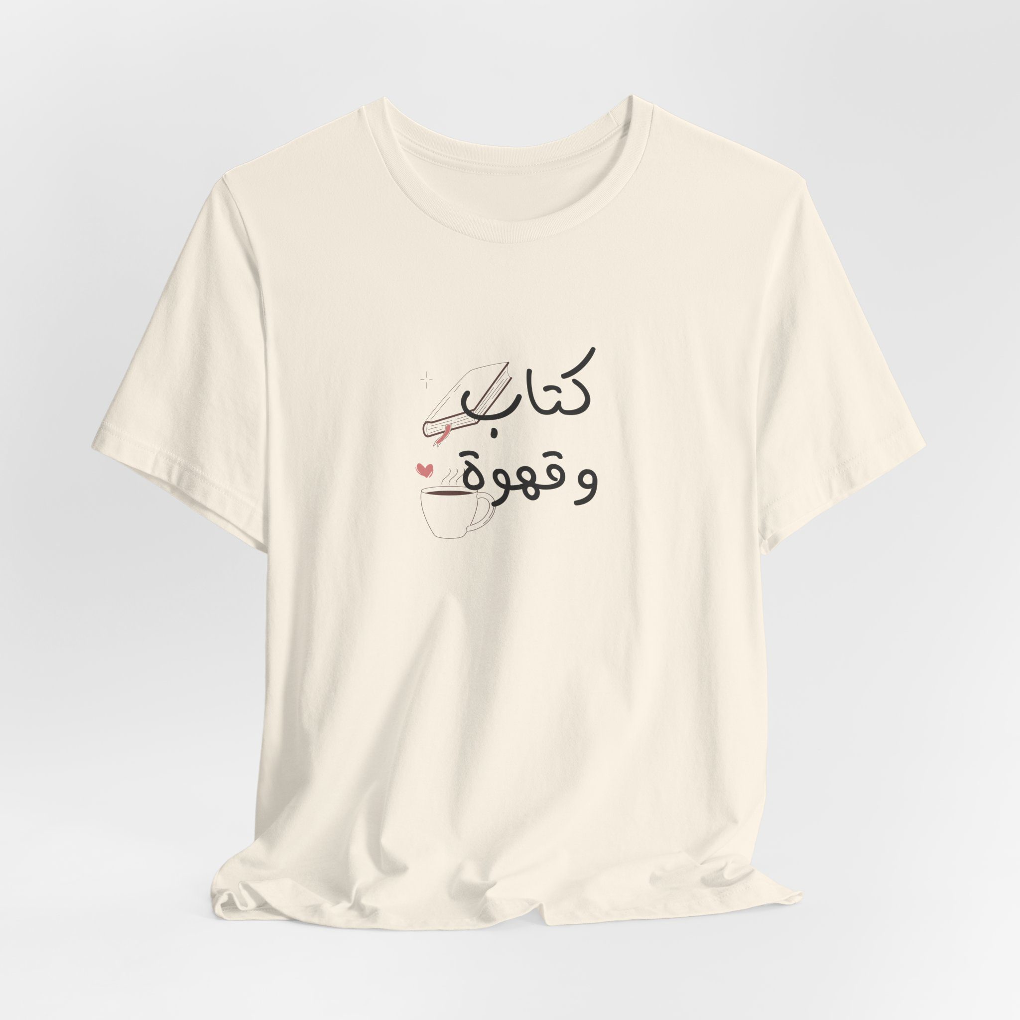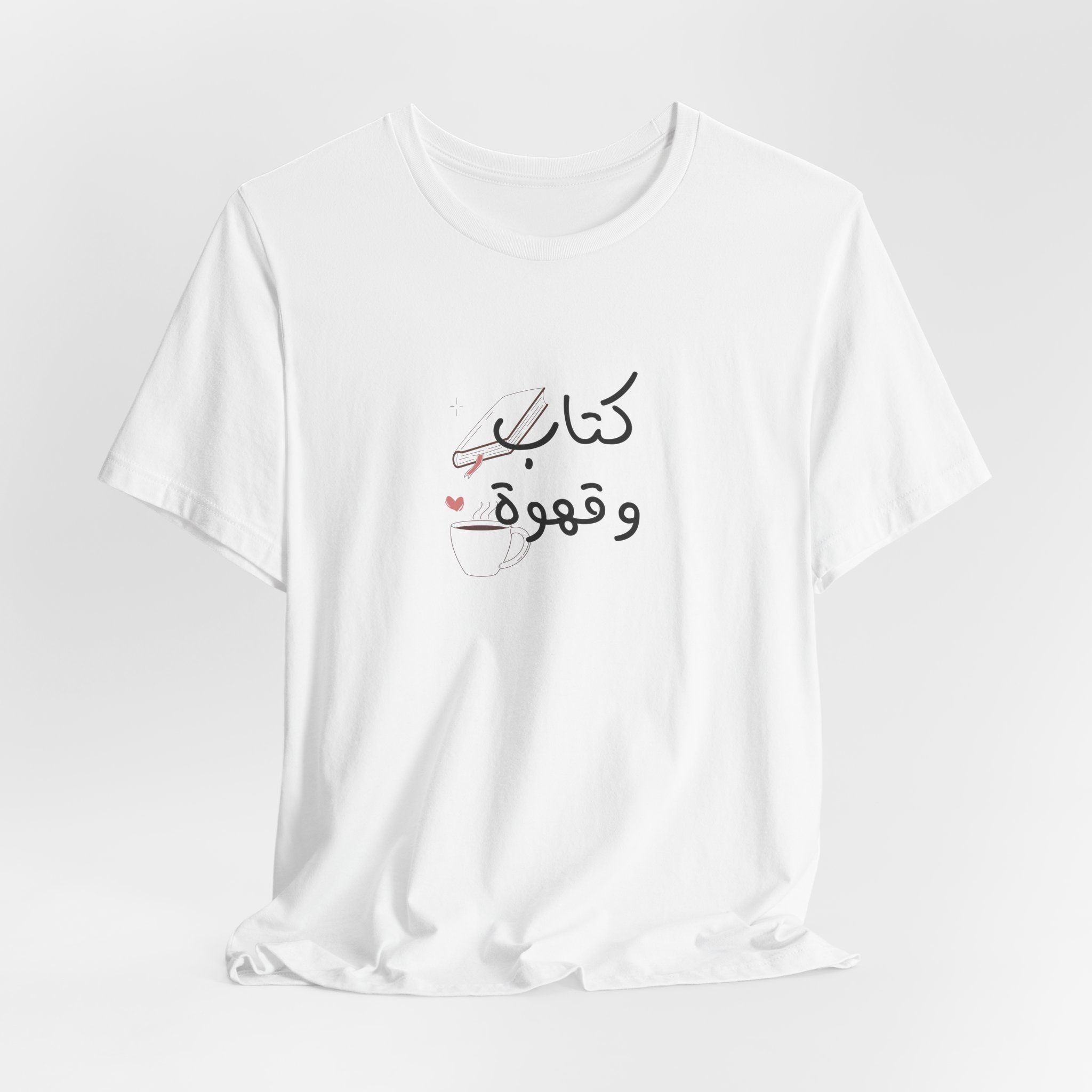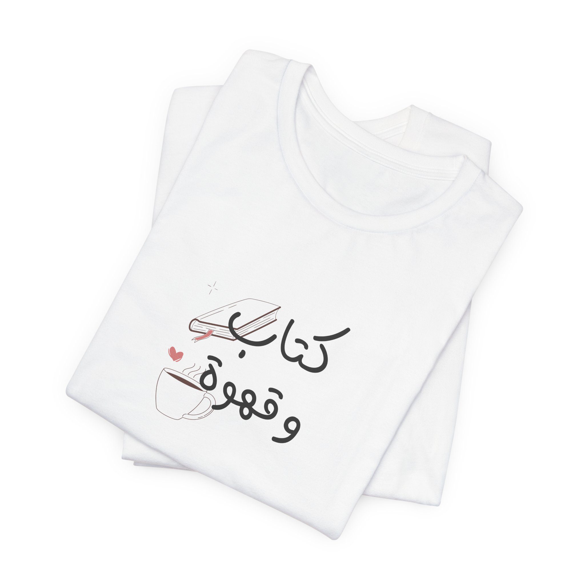 Unwind in comfort with this Book and Coffee Arabic t-shirt, designed for those who find joy in reading with a cup of coffee.