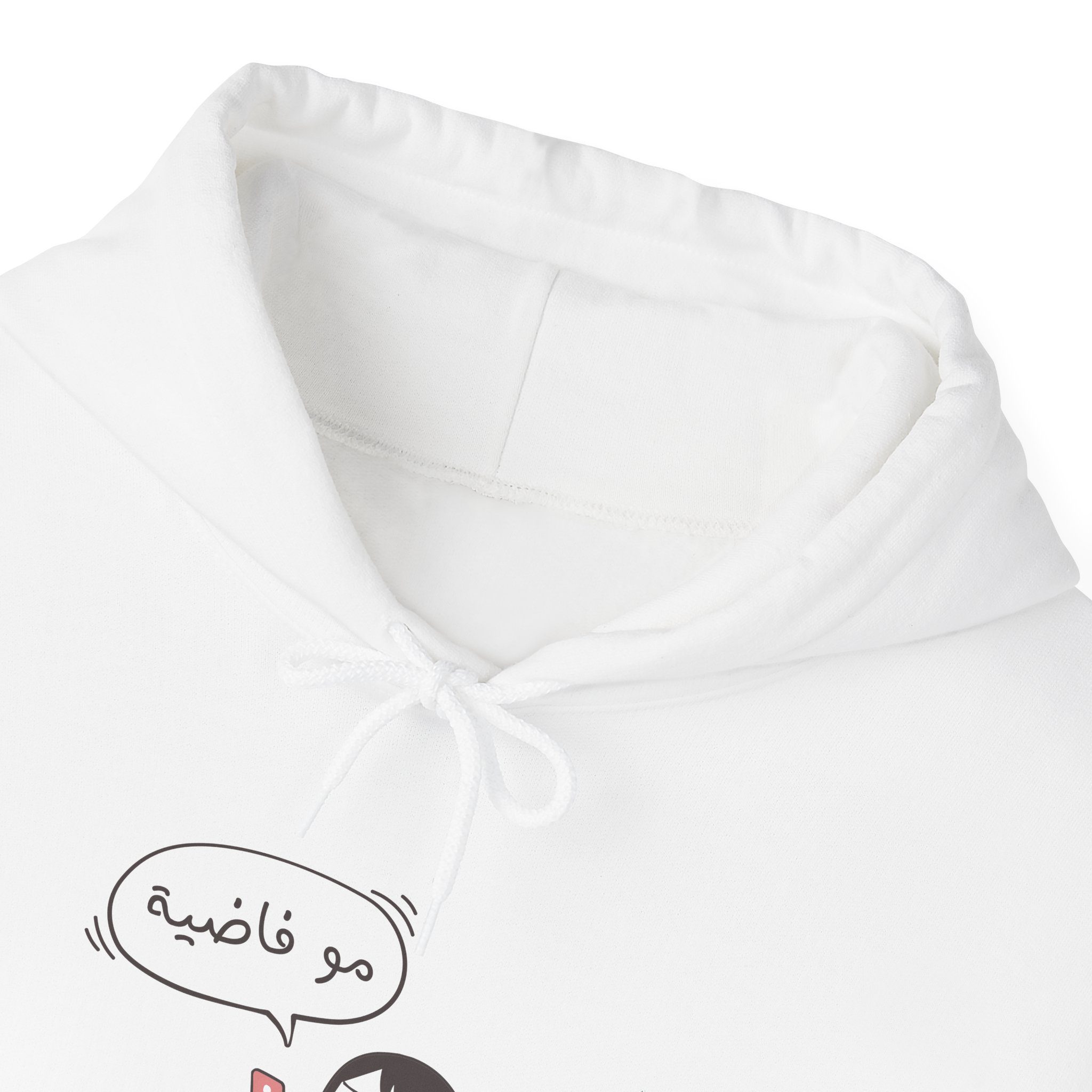 This funny Arabic hoodie for women is all about comfort and a touch of humor. The design shows a relaxed girl lounging with her phone, coffee in hand, and the witty Arabic phrase “مو فاضية” (“Not free”) – when you’re not actually busy, but you just need your space. a playful nod to lazy days when you just don’t feel like doing much.