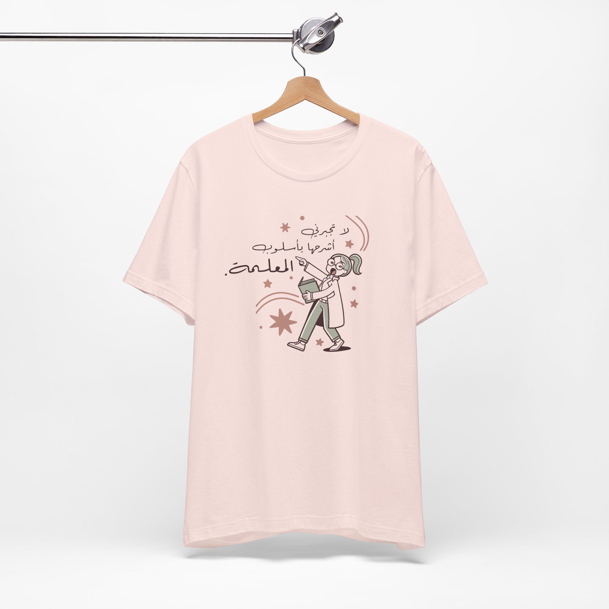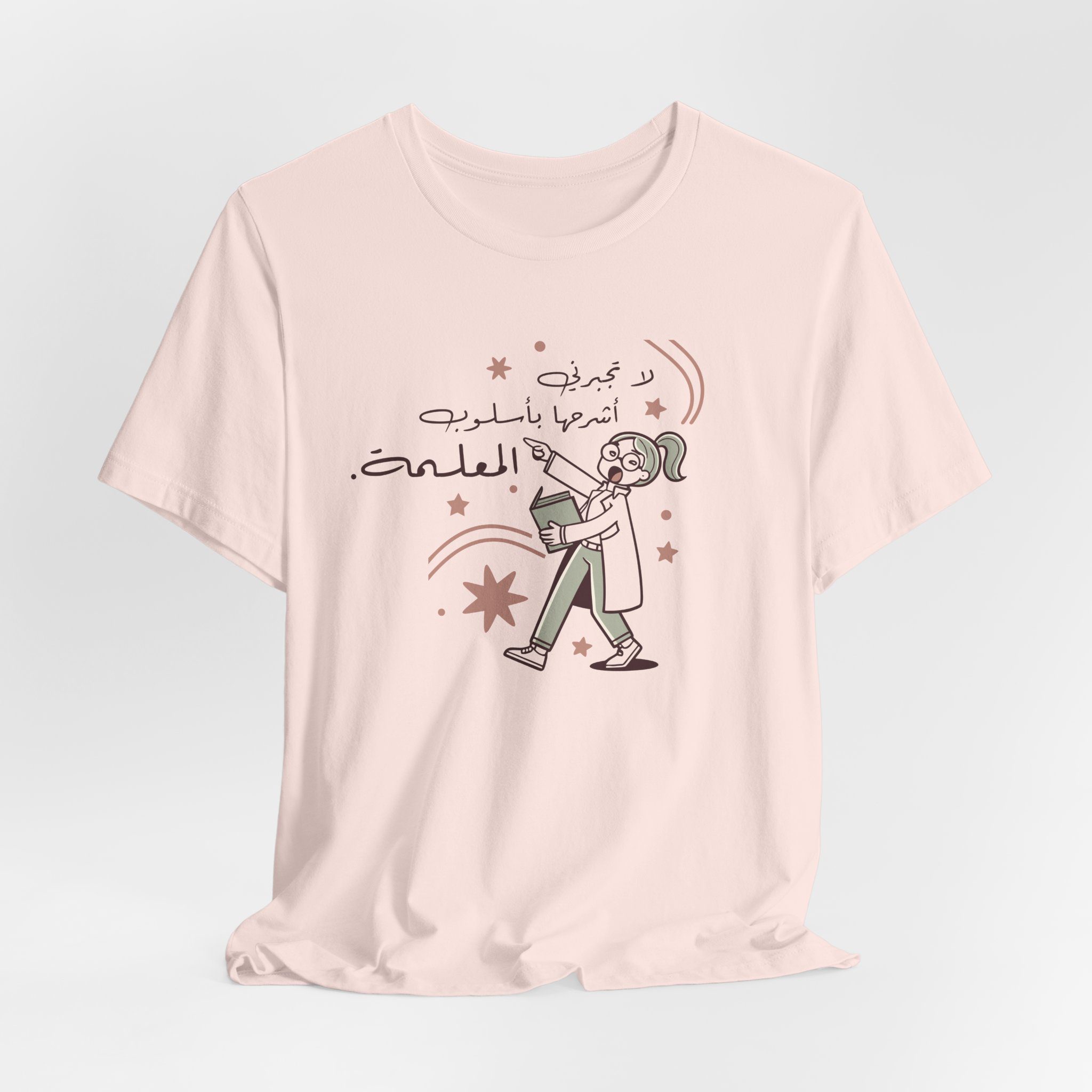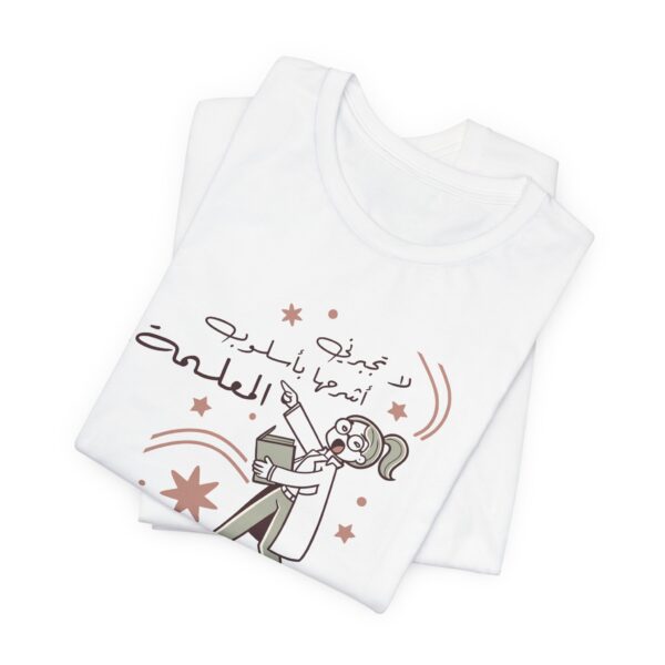 Add humor to your wardrobe with this funny Arabic teacher t-shirt designed for women who know the power of a teacher’s tone.