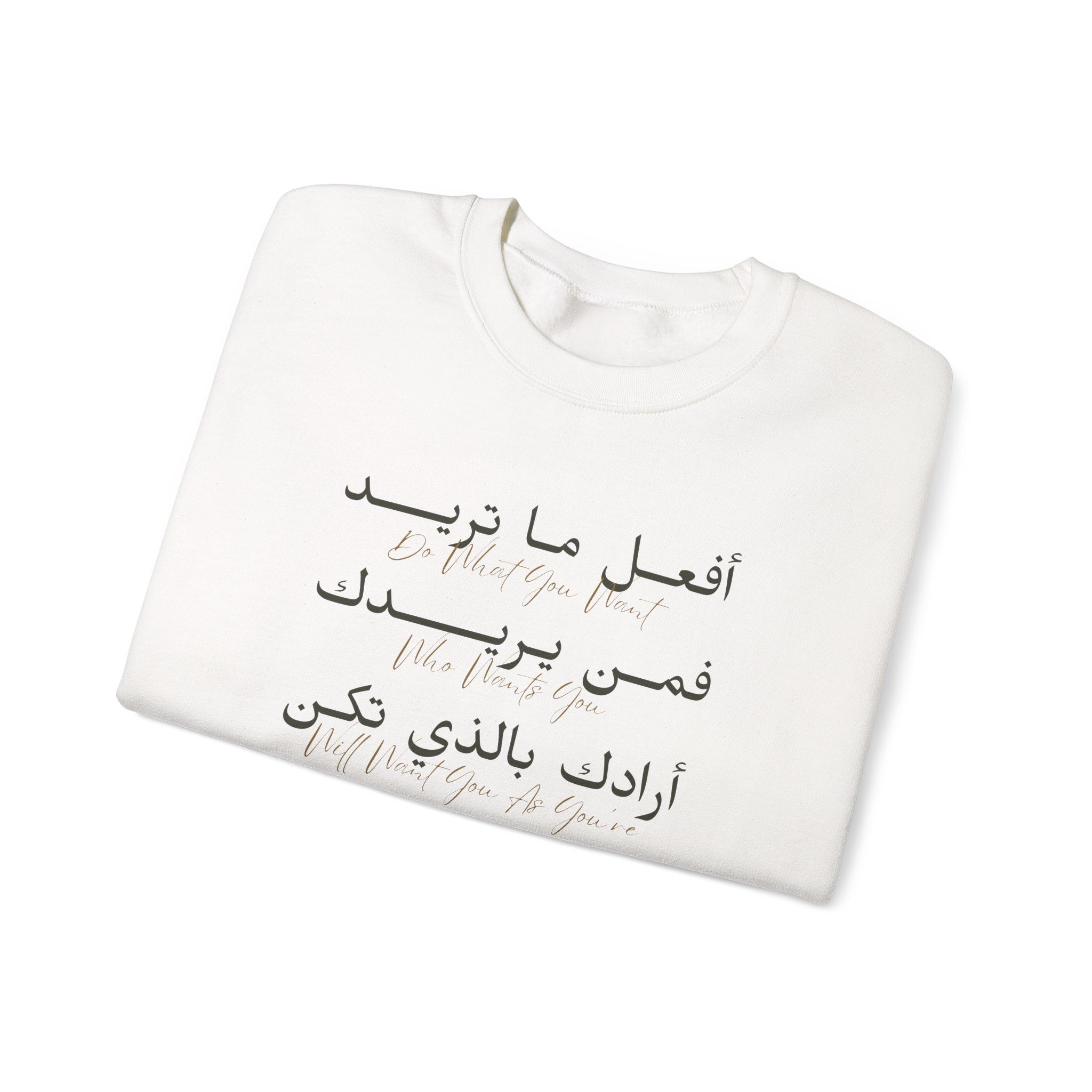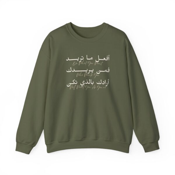 This inspirational Arabic sweatshirt features a unique design with Arabic calligraphy alongside soft handwritten English translation.
