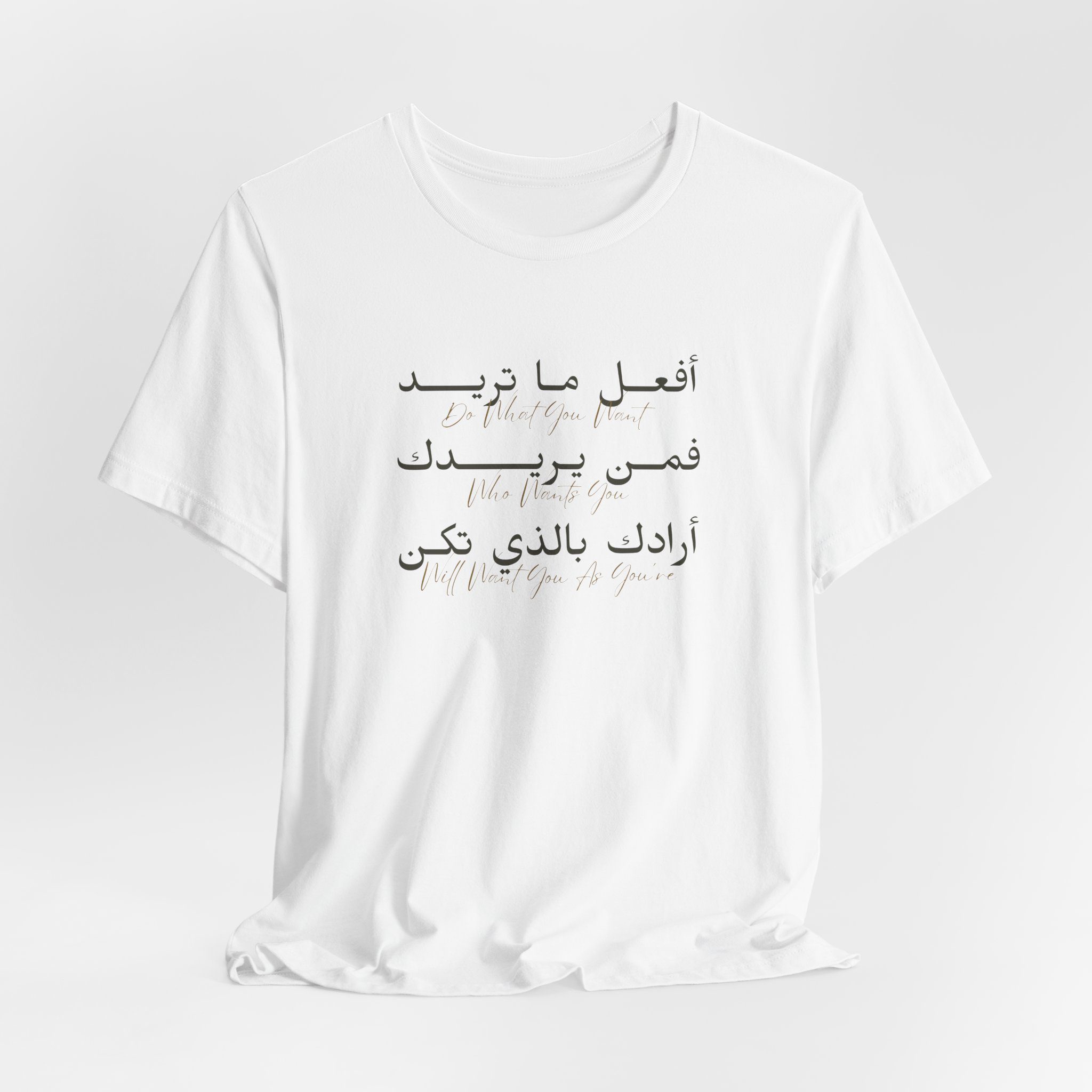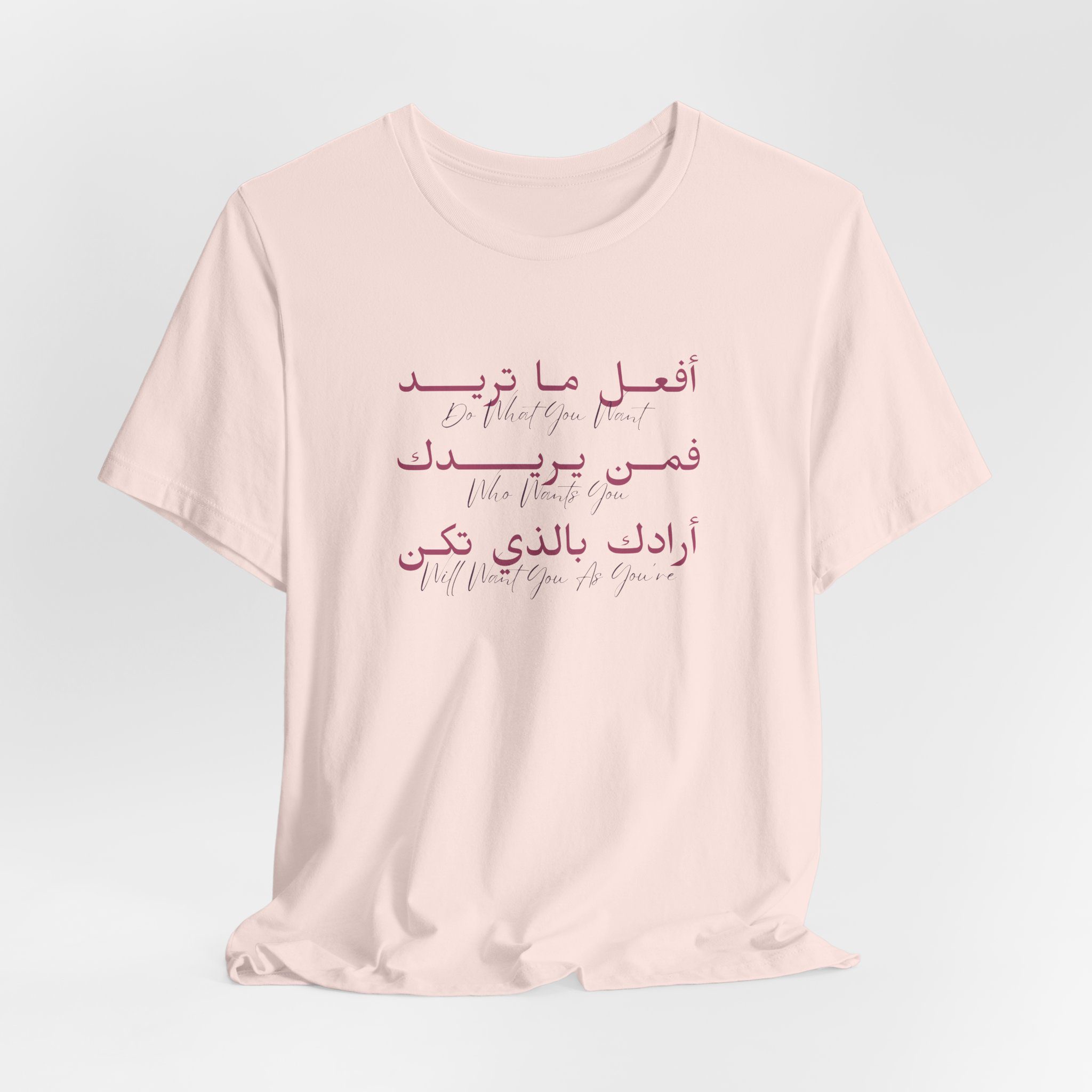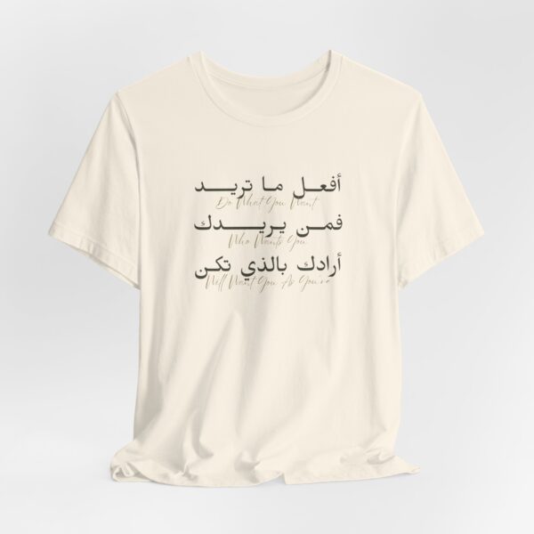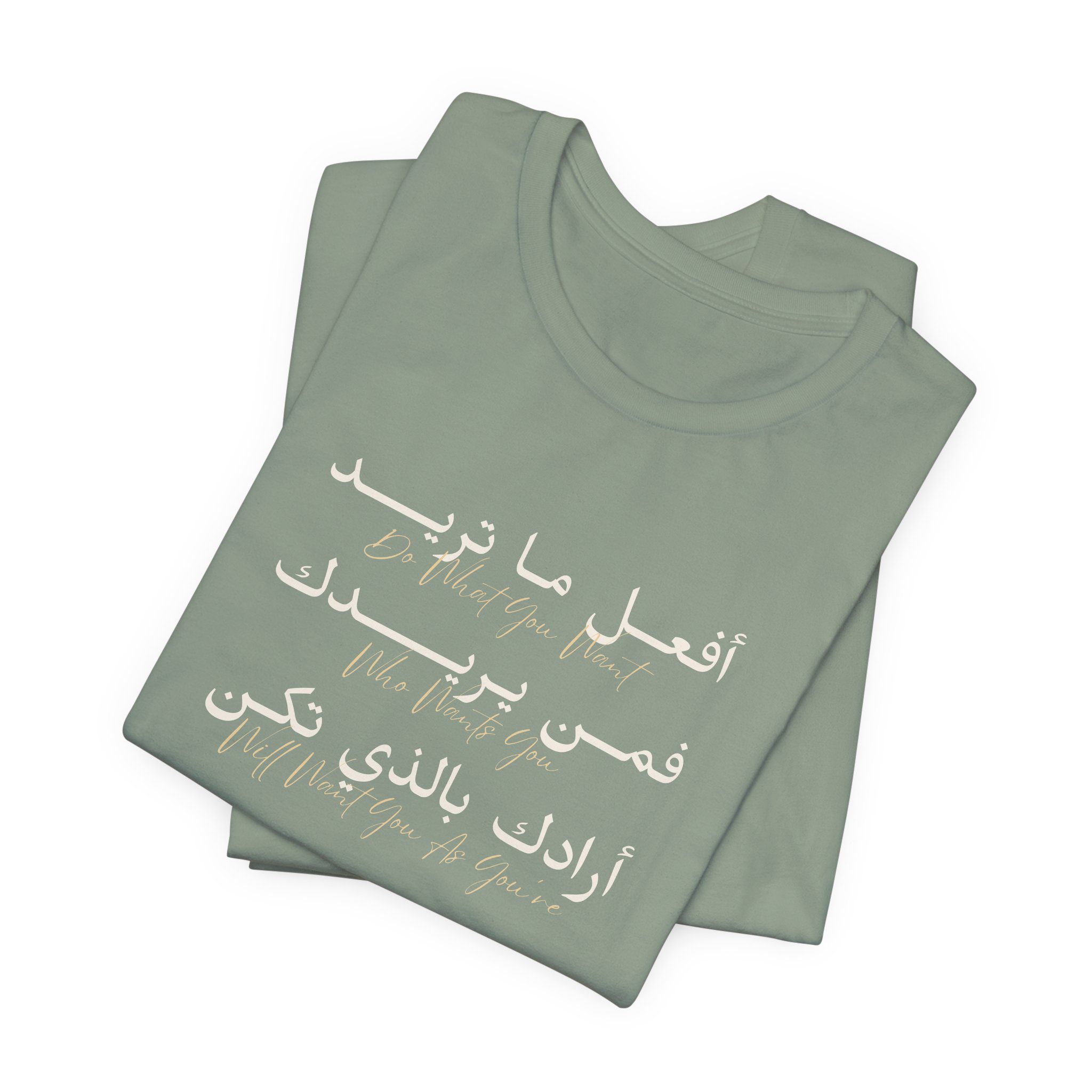 This Inspirational Arabic T-shirt features a unique design with Arabic calligraphy alongside soft handwritten English translation. Its message express individuality and self-worth, making it more than just apparel—it’s a wearable affirmation of freedom and authenticity.