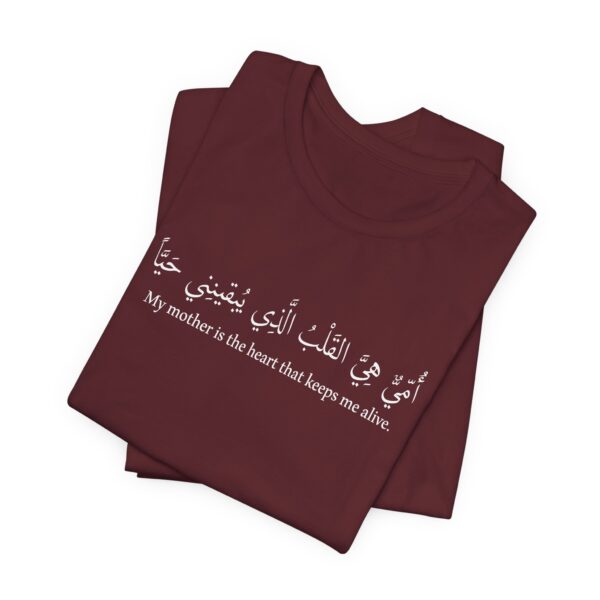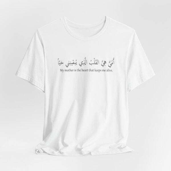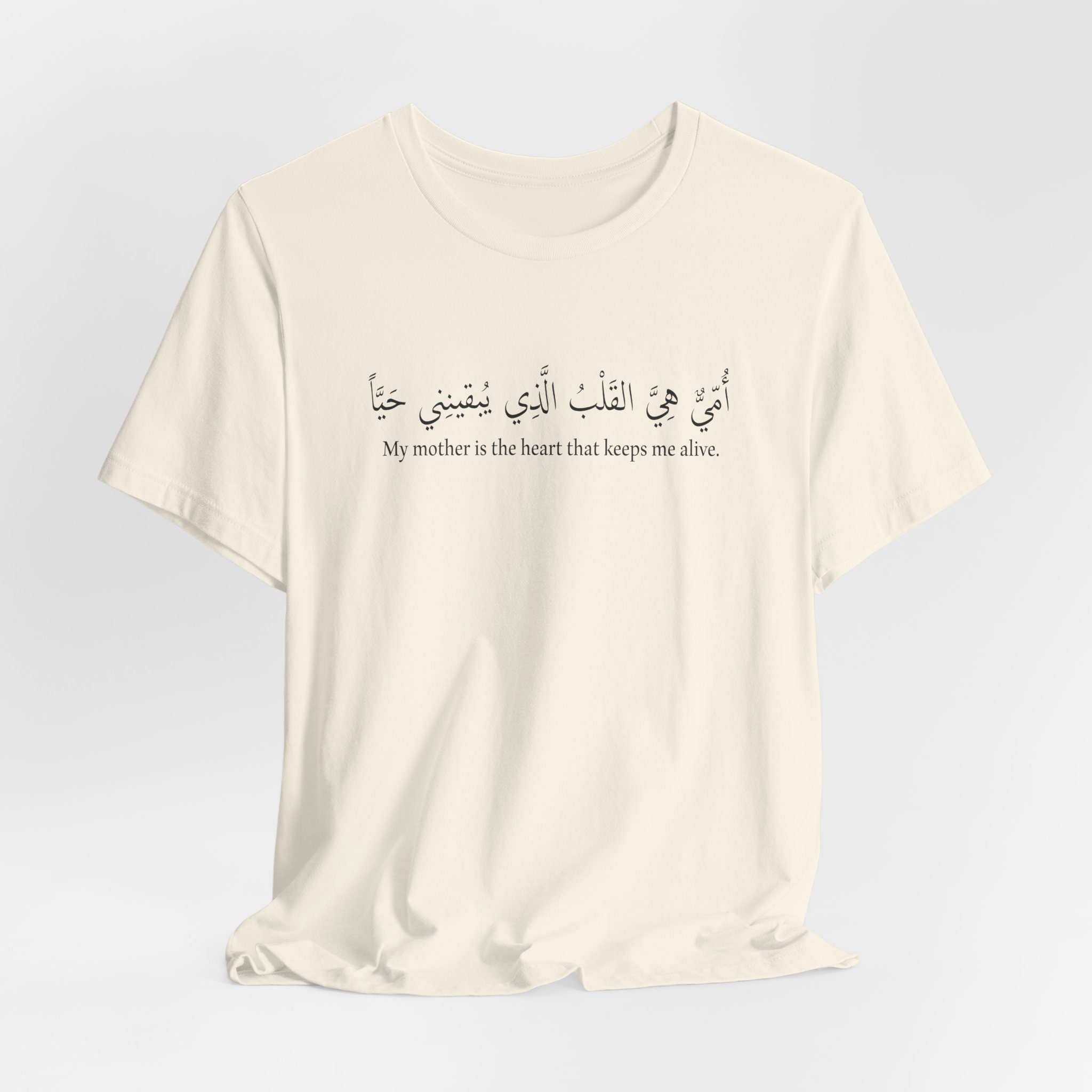 Show your love and pride toward your mom with this meaningful Arabic quote ‘أمي هي القلب الذي يبقيني حياً’, and English translation (‘My mother is the heart that keeps me alive’).