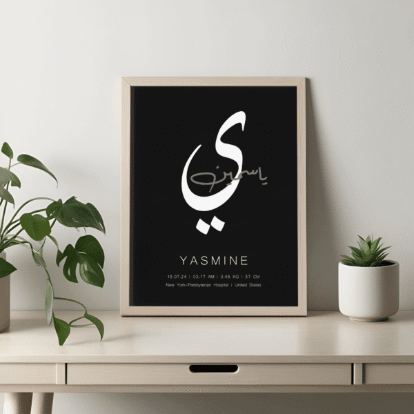 Looking for the perfect Arabic gift for baby showers? Delight new Arab parents with a Personalized Arabic baby name digital wall art, perfect for decorating their baby’s nursery or playroom.